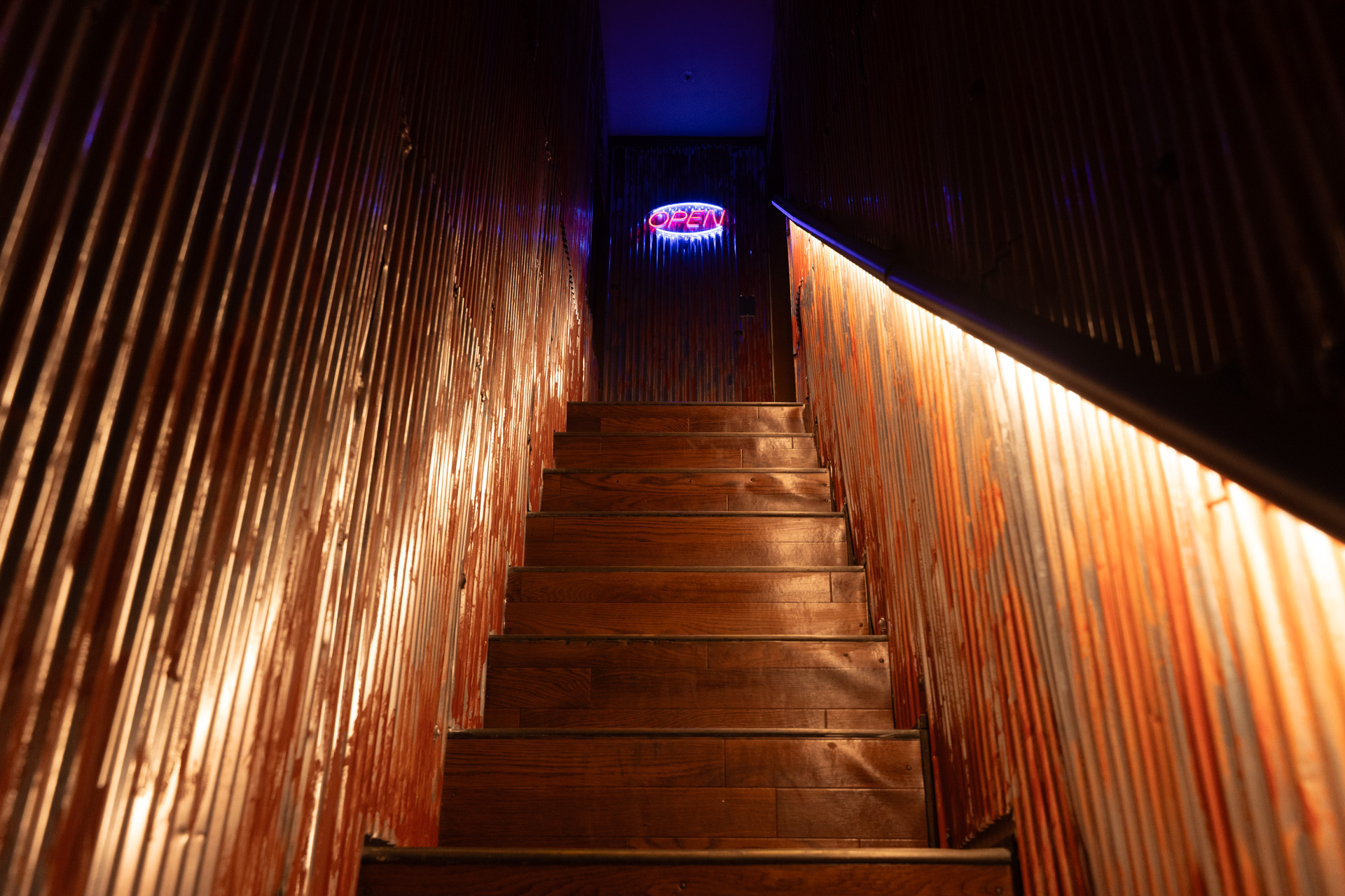 「会員制のように入店のハードルを上げたいのではなくて、遊び心としてニヤッとしてほしい」とオーナー。秘密基地らしいワクワク感を演出しています。
