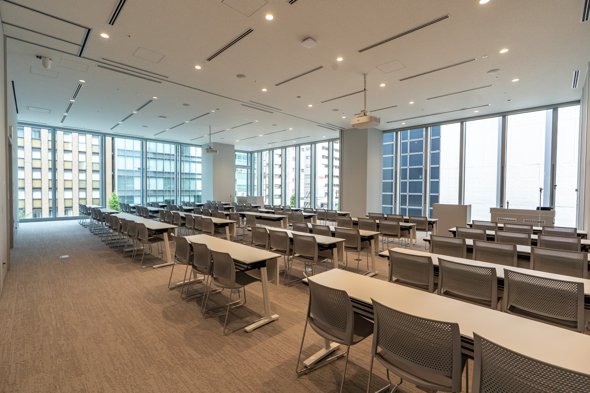 こちらは最大90名が入れる会議室。3階は誰でも予約できるので(有料)、近隣企業の方もイベントやセミナー、勉強会などで使えそうです。