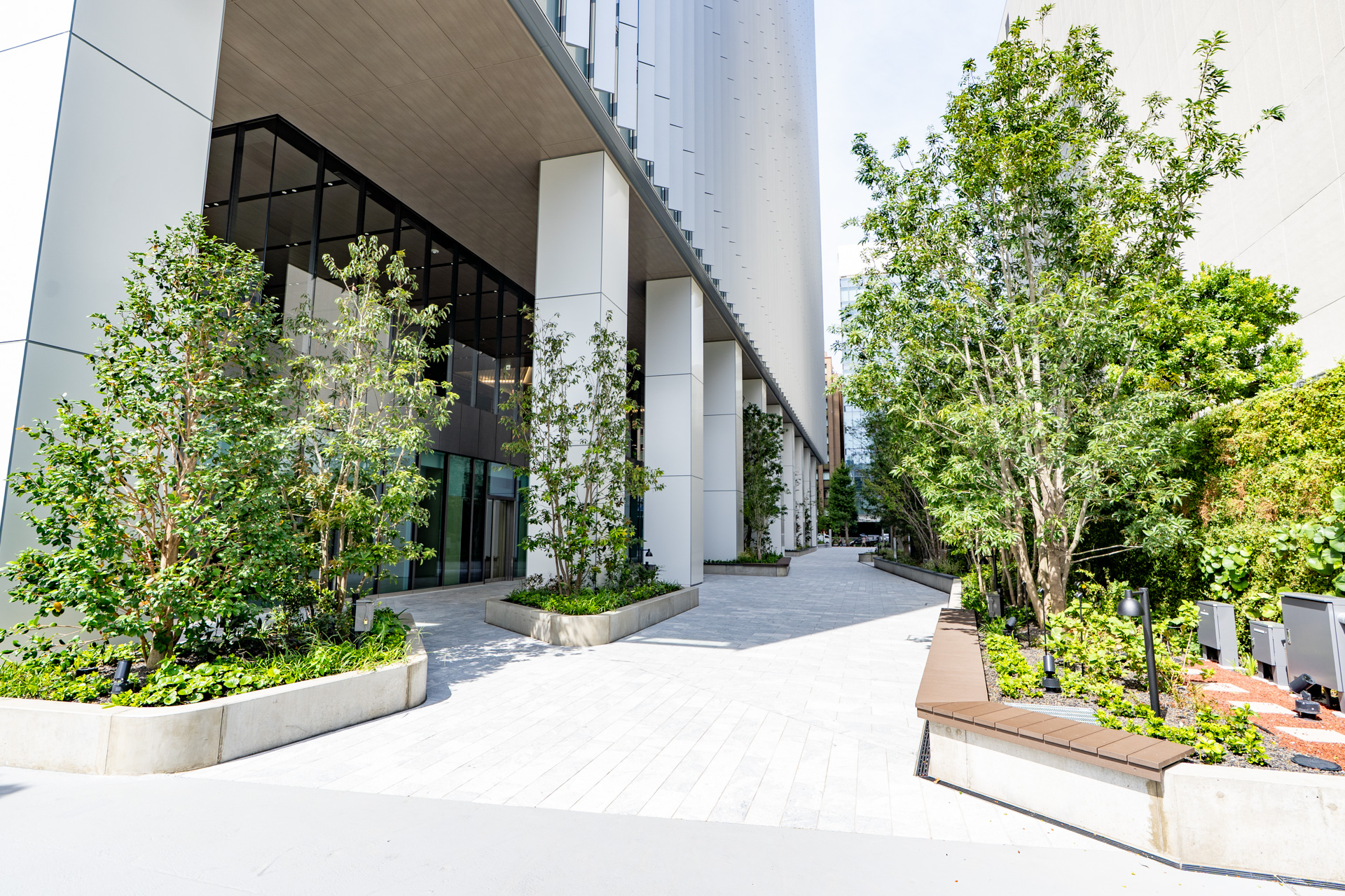 「ミタマチテラス」という名前は、“三田”と“田町”を合わせた「ミタマチ」に、「テラス」を組み合わせた造語。“テラス”のような憩いの場となるように、またこのエリアを明るく“照らす”存在になるように、という意味が込められているそう。